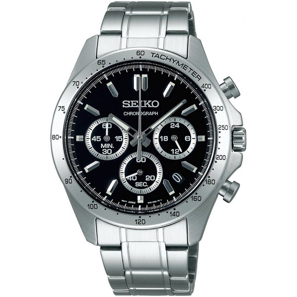 Seiko Spirit SBTR011 - men's watch manufactured by Seiko. It is equipped with Japanese quartz movement and 8T63 calibre. Stainless steel case of round shape. Case dimensions are 42.2 mm. in diameter and 11.7 mm. in thickness. The dial of this Seiko watch is blue. Display type: analog. This timepiece has hardlex glass. Stainless steel band, band color: silver. 100 m. water resistance. The watch is from Spirit collection. The following features are equipped: date, chronograph, glowing hands, glowing markers.